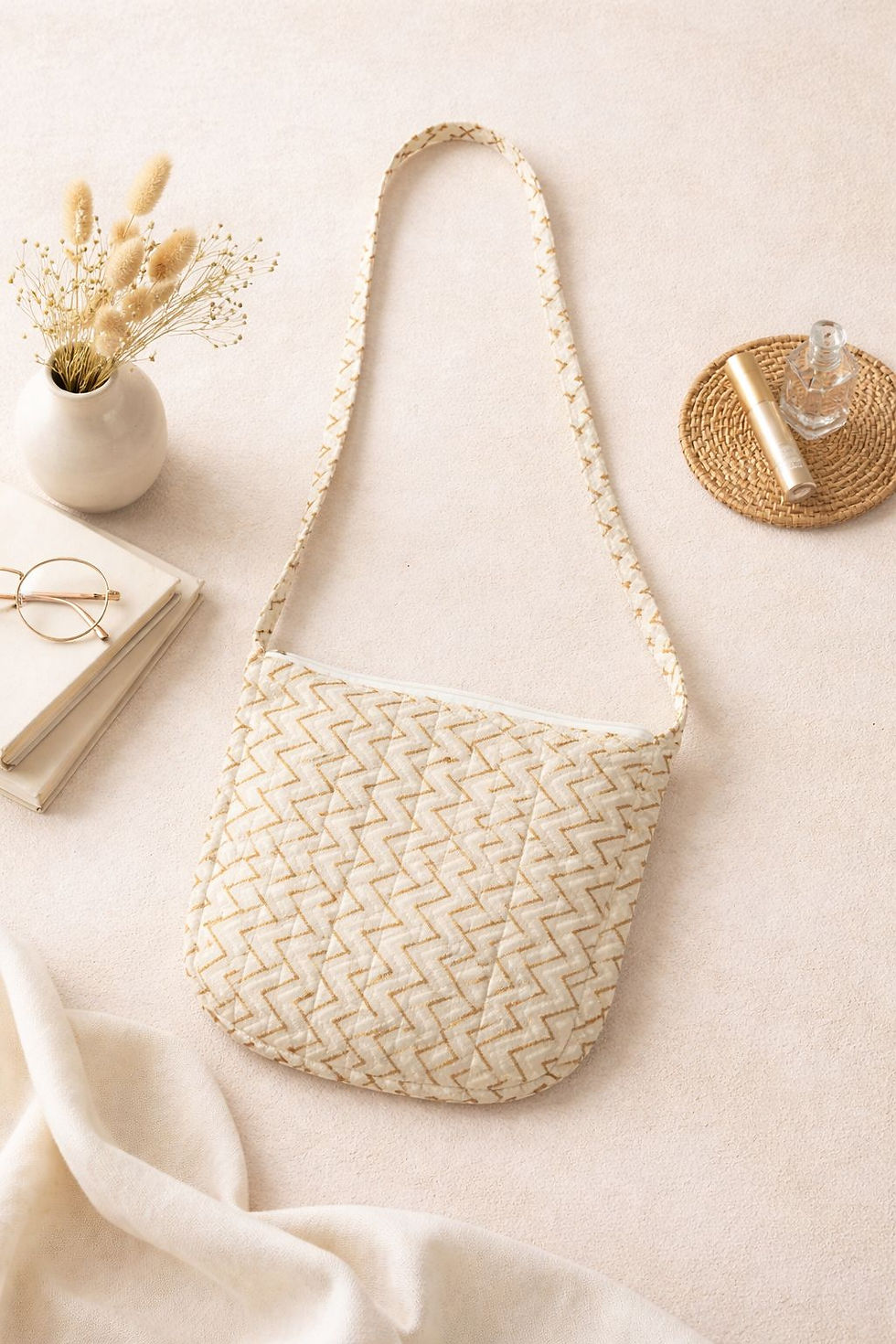 Block Printed Tote Bag - White & Pink